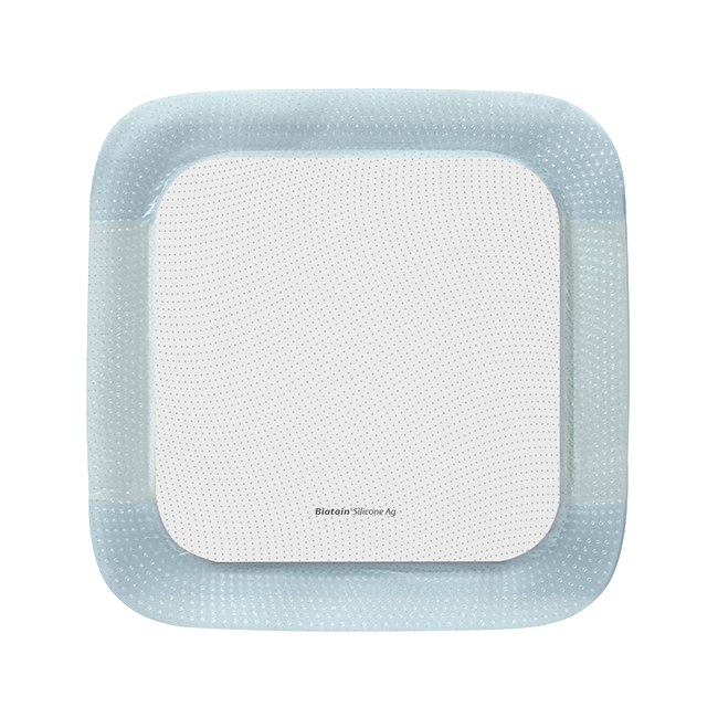 Biatain® Silicone Ag ist ein weicher und anpassungsfähiger Polyurethan-Schaumverband mit einem in der gesamten Schaummatrix homogen verteilten Silberionenkomplex. Der Verband zeichnet sich durch einen semipermeablen, bakterien- und wasserabweisenden Topfilm sowie einen sanften Silikon-Haftrand aus.